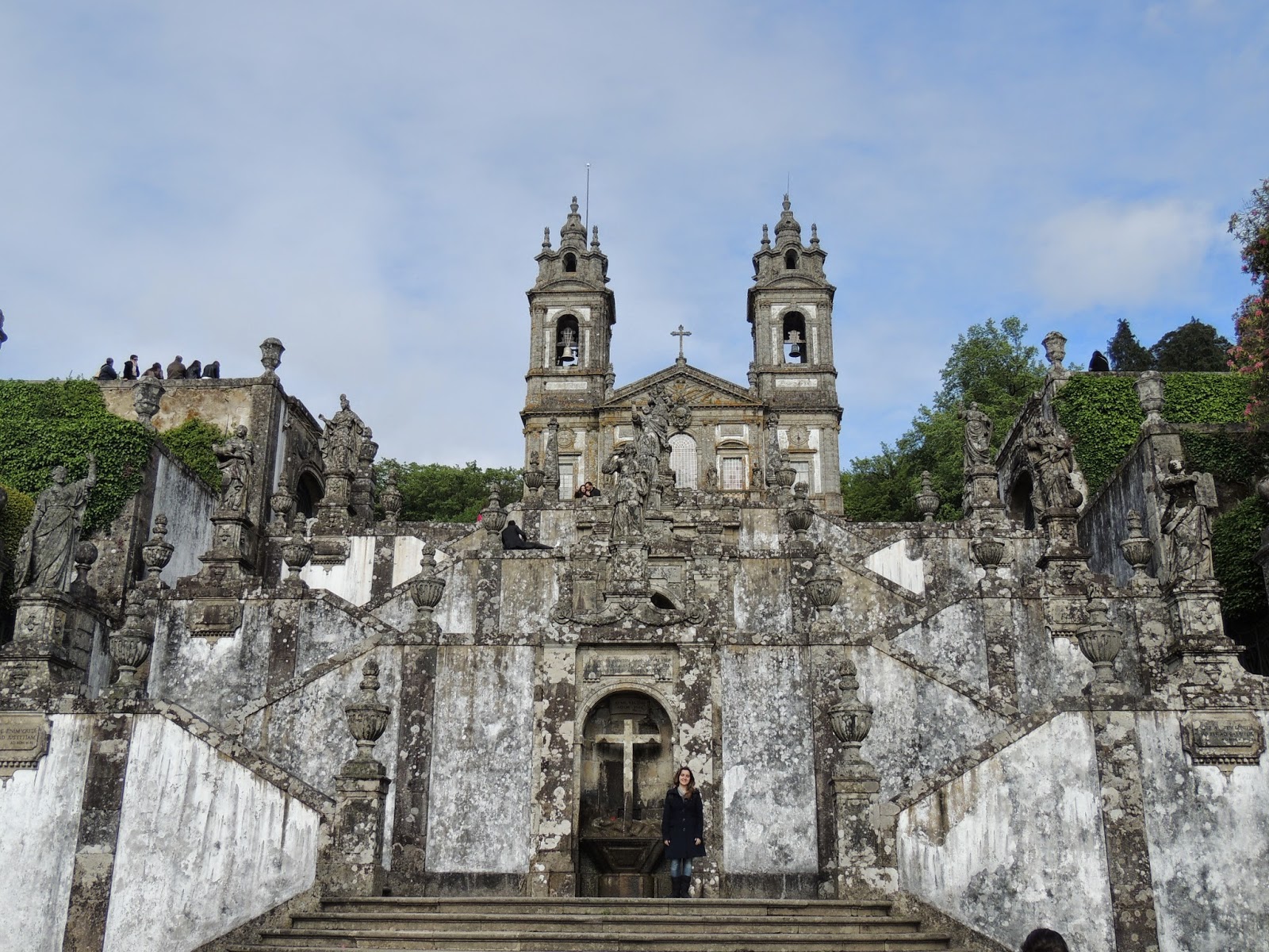 Dizem que Braga também é uma boa cidade para agitos, bares, etc. Fomos num feriado prolongado, estava quase tudo fechado no centro histórico. O restante da cidade fica ao redor da "muralha" e esta parte não conhecemos. Mas Braga ainda tem um cartão postal mais maravilhoso que é a Igreja do Bom Jesus do Monte (como bom termo lusitano, com sentido literal - vocês entenderão vendo as fotos), que fica a uns 5km do centro histórico. É fácil chegar, tem um ônibus/autocarro (o número 2, se não me engano) que para exatamente na frente da estação de trem/comboio e leva até o santuário.